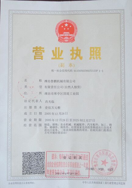 “魯鵬機械”主要為配套產品,主要生產汽車配件,農機配件等產品。主要配套廠家有濰柴雷沃重工股份有限公司濰坊農業裝備分公司,贏得了客戶的信賴。